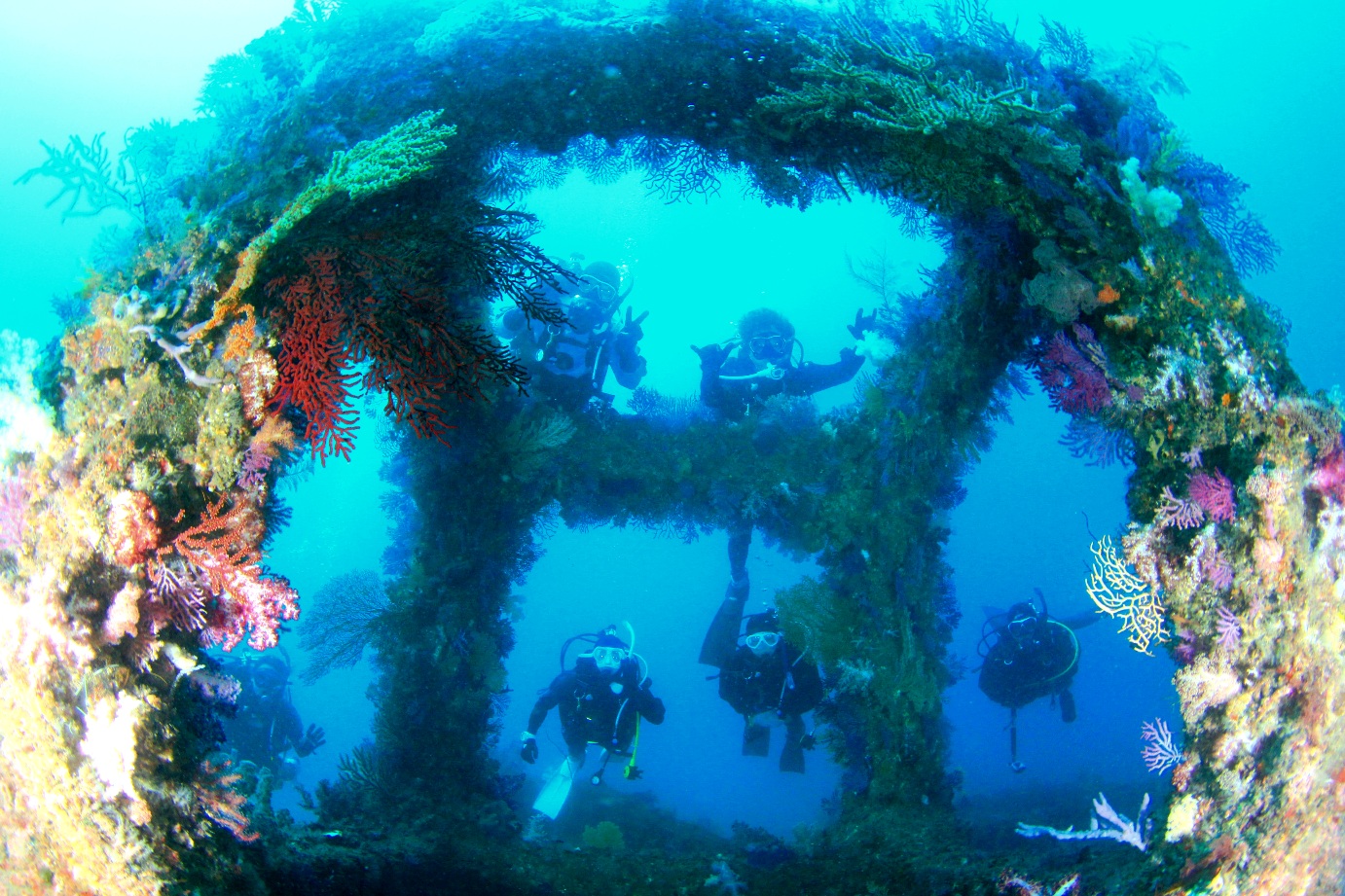 魚礁で全員顔出ししたり、プチ洞窟探検したり、、!