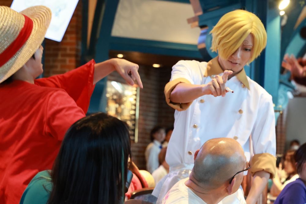 ショーレストランでご飯を食べながらワンピースにでてくるキャラがショーをしてくれてます。