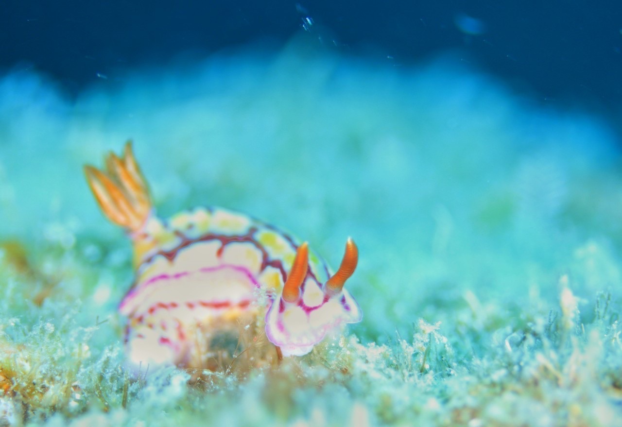 海のアイドル。ウミウシ。ダイバーであれば誰もが見たことのある生き物。世界に3000種、日本で800種います。新種のウミウシをもし見つけたら自分で名前つけれるんです。潜ったらみんなぜひ探してみてくださいな。僕はダイバー人生で一度は新種見つけてみたいです。ほんでガンタウミウシて名前つけるねん。それが一つの夢だ。みんなも頑張って。