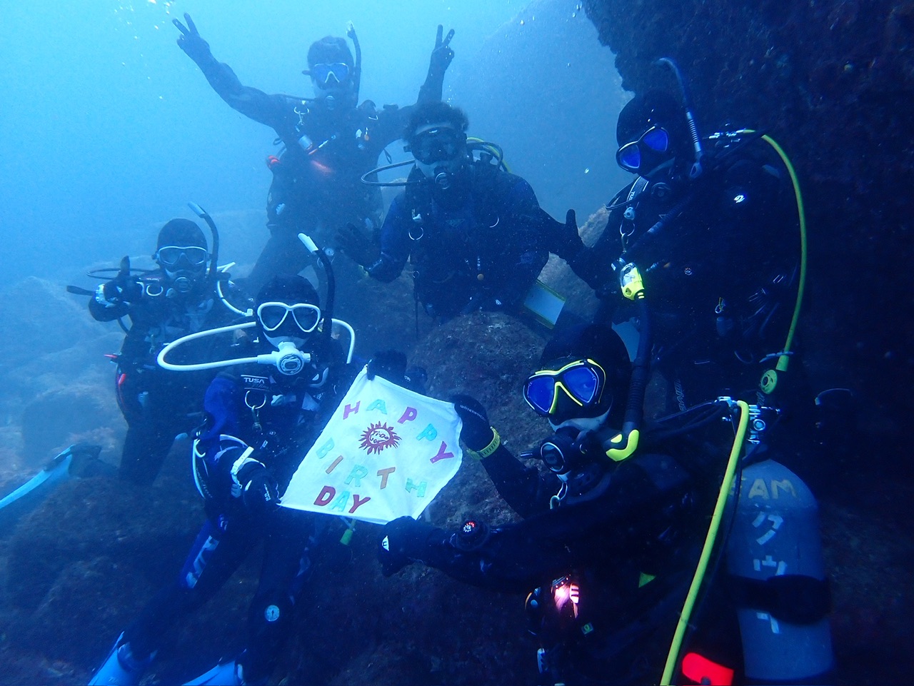 梶賀に潜りに行ってきました。この日はなんとバンチャンの誕生日。どら焼きでお祝いしたけどまさかのあんこアレルギーで食べれない。いろんなアクシデントがありながらでも笑いまくりの最高の一日でした。