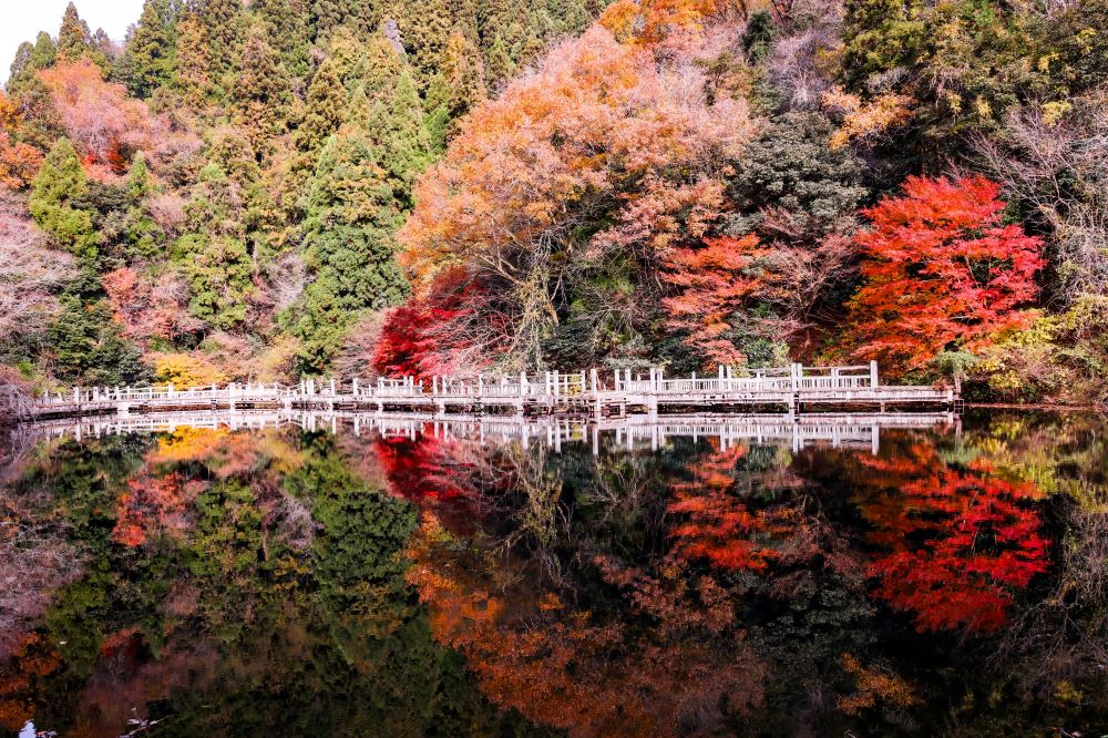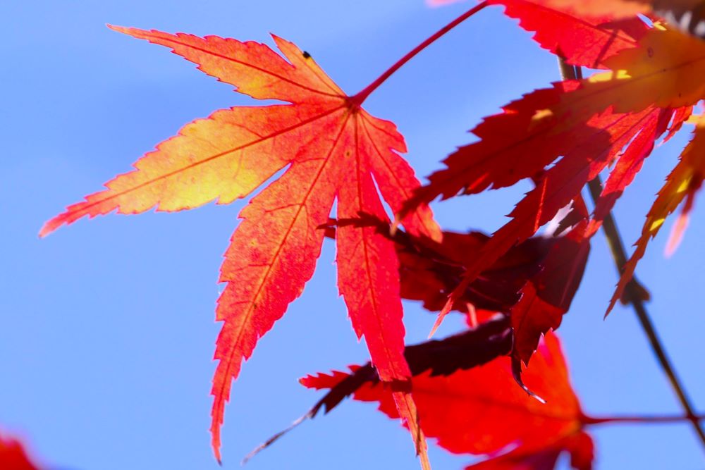 真っ赤な紅葉とオレンジの紅葉が合わさって色鮮やかな2色紅葉でした。