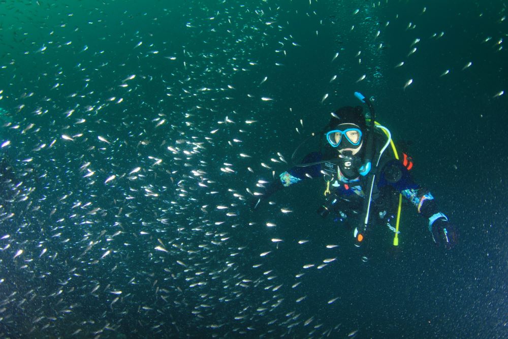 ネンブツダイの群れも凄く、魚群の中を突っ込むのが楽しい!