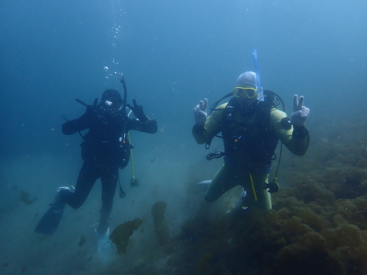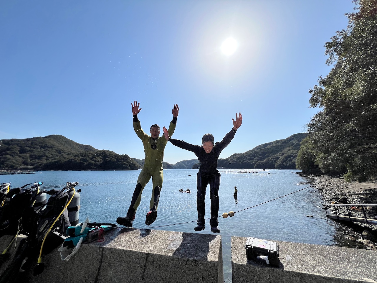 シノ、リョウちゃん初海講習に行ってきた!あったかくなってきて陸でも海中でも快適な最高の季節になってきたわ!2人にも最高の初海思い出になったでしょうよ!
