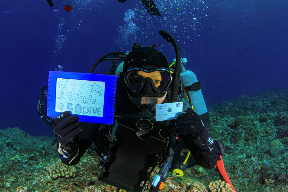 このようにリゾートで記念ダイブを迎えた方のみオリジナルTシャツをプレゼント!